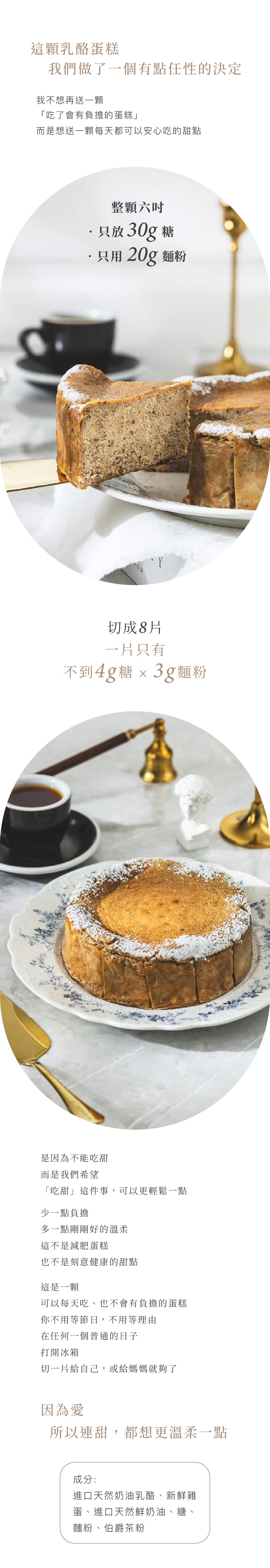 成份 : 進口天然奶油乳酪、新鮮雞蛋、進口天然鮮奶油、糖、麵粉、伯爵茶粉