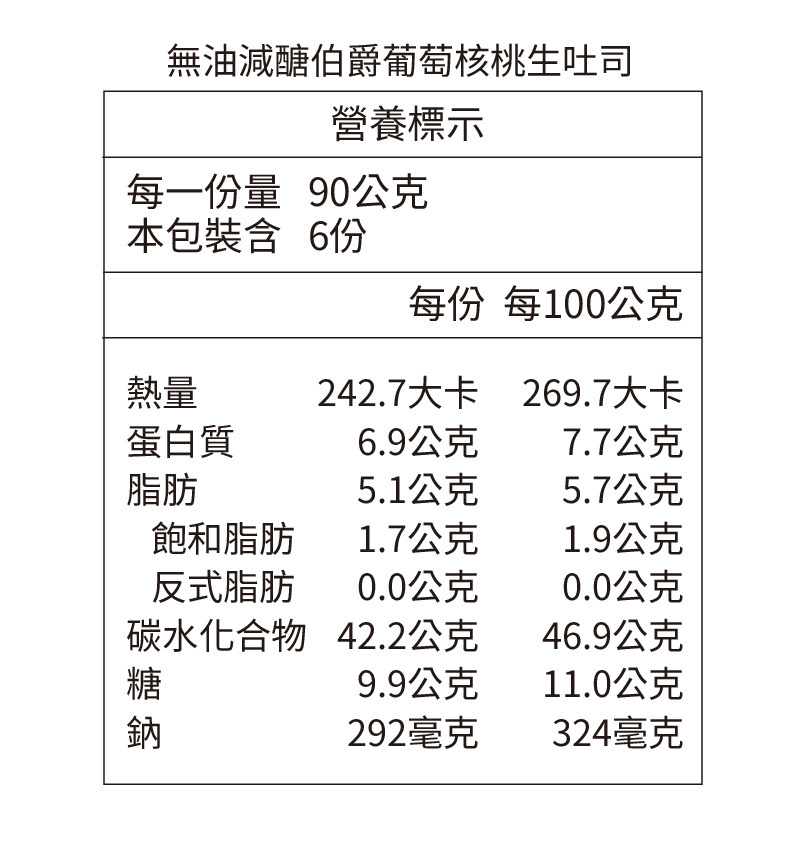 品 名 : 無油減醣伯爵葡萄核桃生吐司