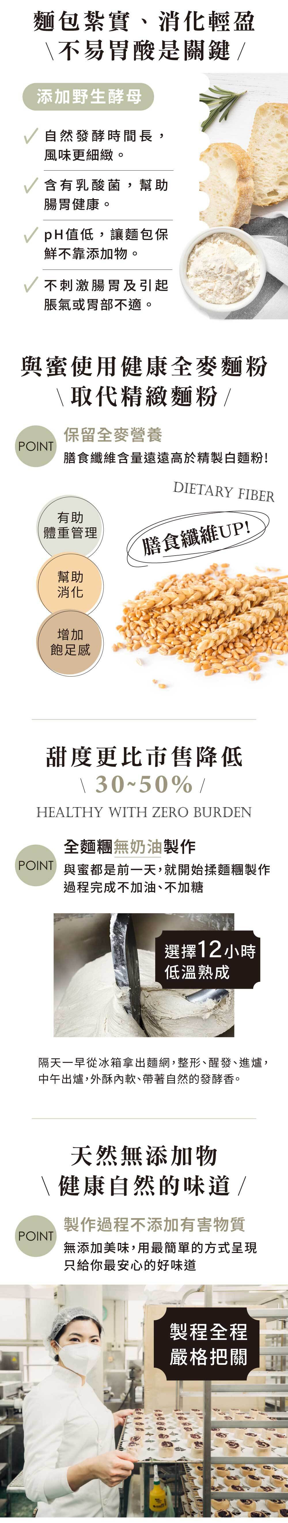 食用方式 : 麵包退回室溫即可以食用,也可以在麵包上噴水,烤箱180度烤3-5分鐘