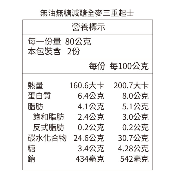 成        份 : 麵粉、水、全麥、乳酪丁、奶油乳酪、鹽、酵母、起士粉