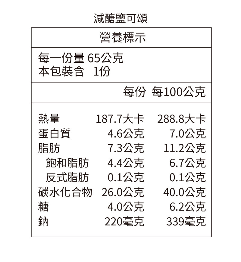 成 份 : 麵粉、水、蛋、天然奶油、糖、奶粉、鹽、酵母