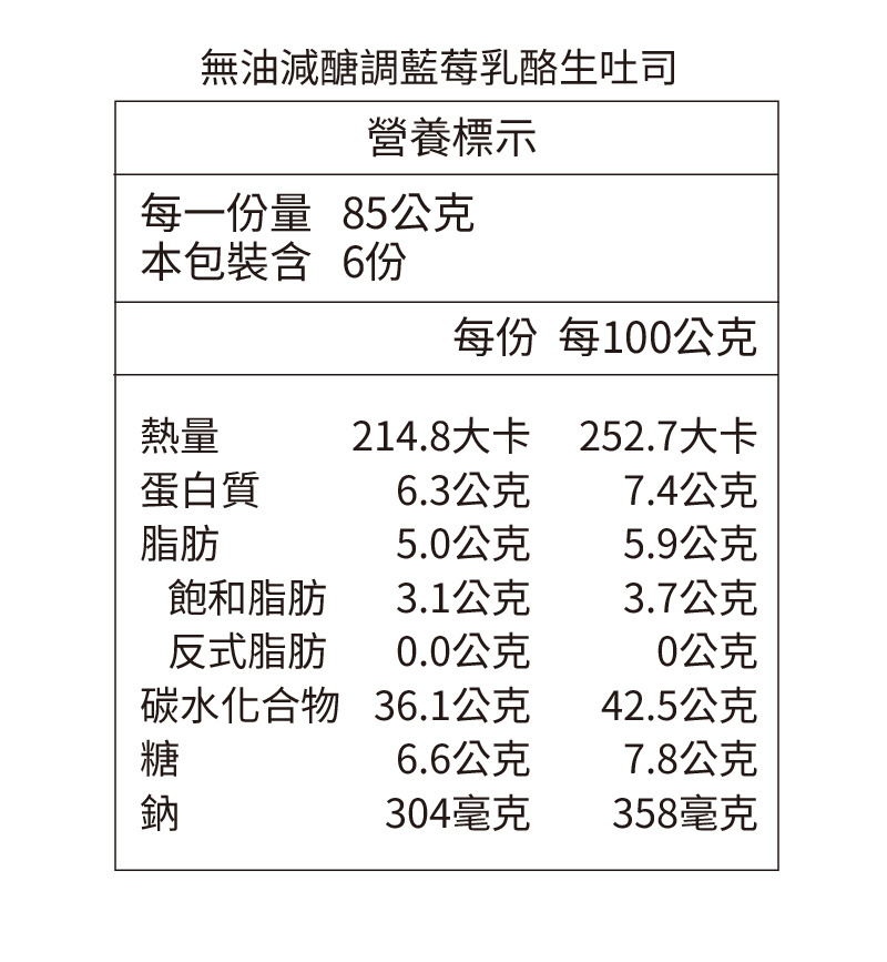 品 名 : 無油減醣藍莓乳酪生吐司