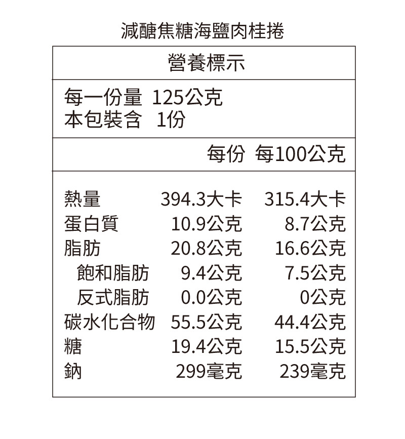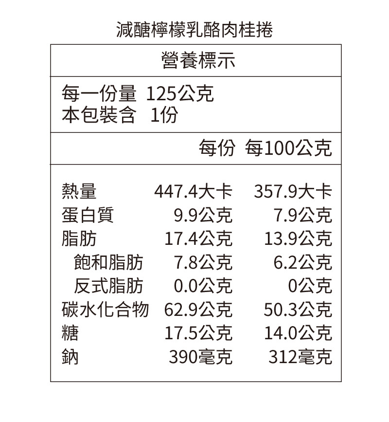 成        份 : 麵粉、水、糖、動物性鮮奶油、天然奶油、奶粉、馬斯卡邦起司、肉桂粉、核桃、酵母