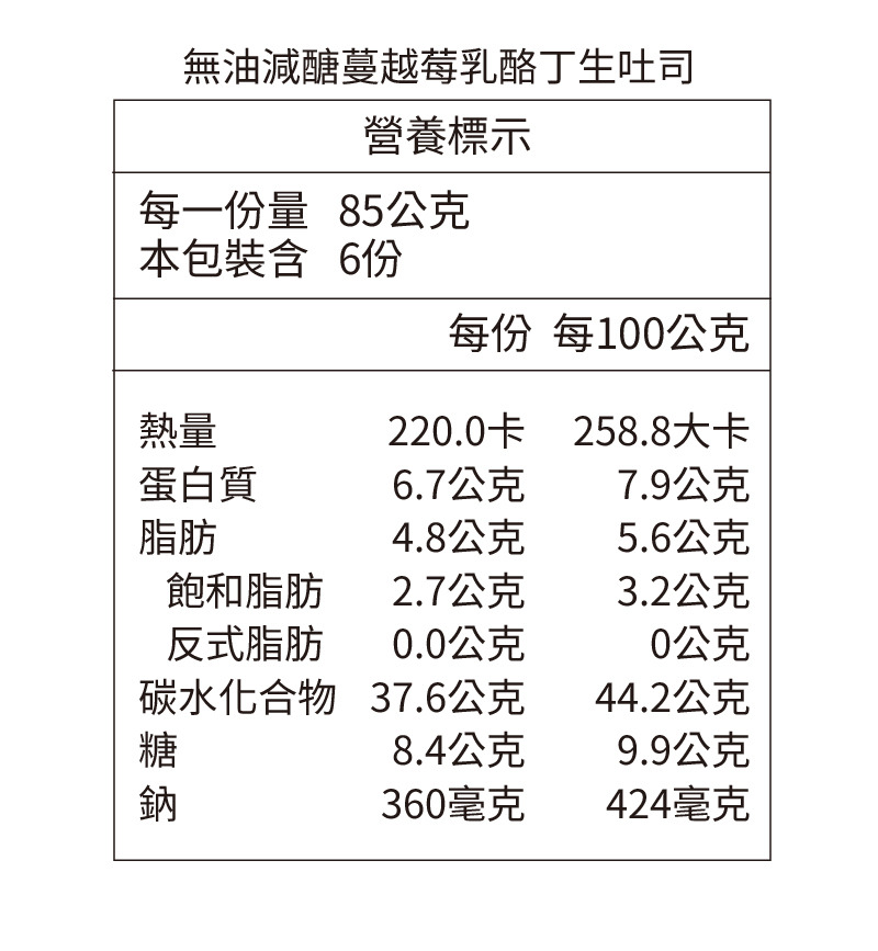 品 名 : 無油減醣蔓越莓乳酪丁生吐司